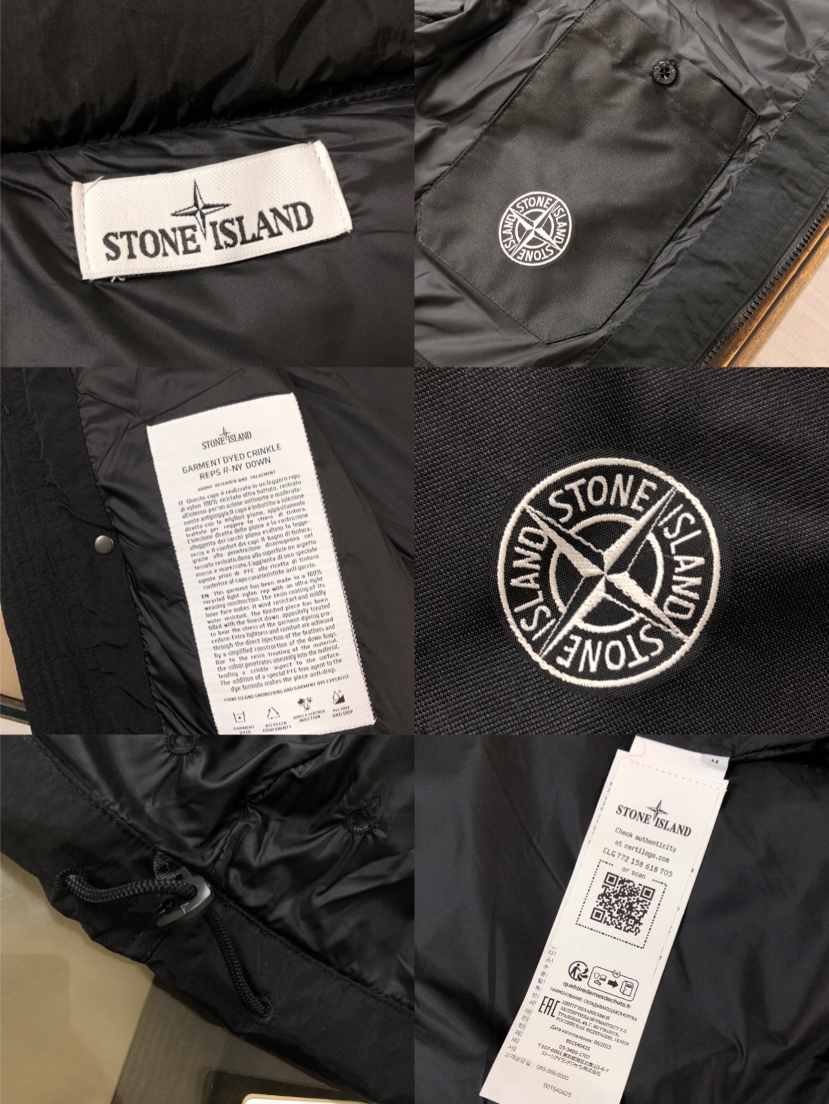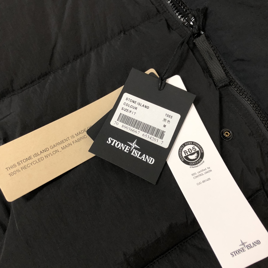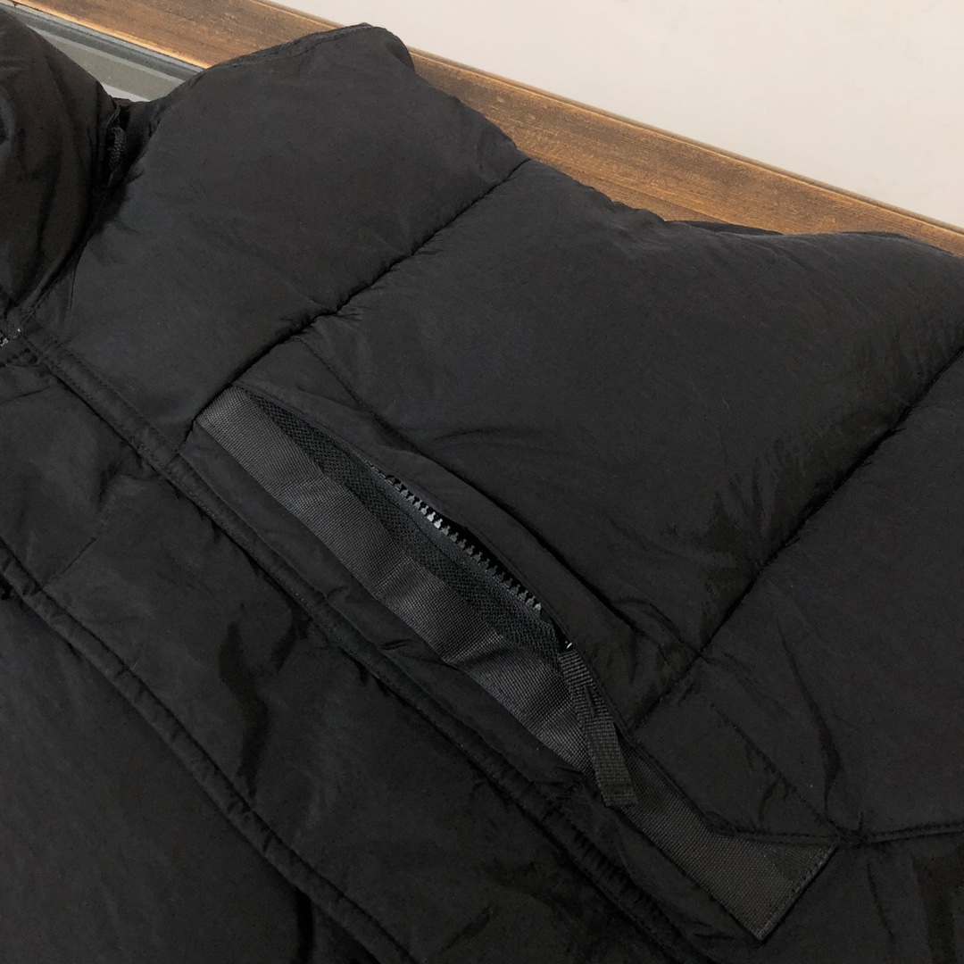 STONE ISLAND Magic Tape Sleeve Badge Couple's Hooded Down Jacket Black